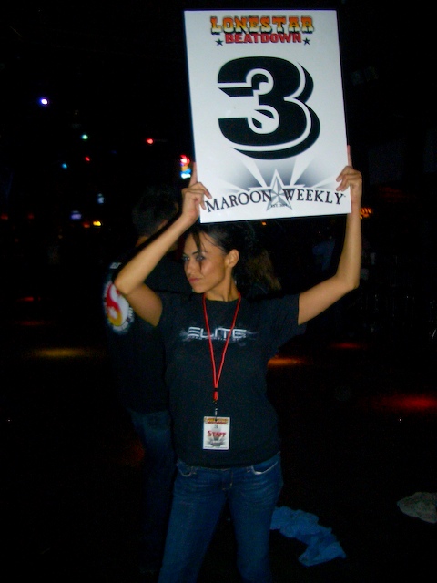 After a very busy week, I hurried home to meet up with Andy & Spencer to head up to College Station for Lonestar Beatdown 3, promoted by Elite MMA and Mick Maynard. We ducked, dipped, and dodged our way through Houston rush hour traffic and got to College Station just in time to get to our posts. I had to role of guarding the blue corner and walking fighters to the ring. 15 fights, good friends, and a fun night taking over College Station..