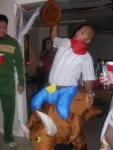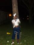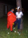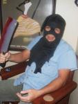 The amazing thing about artists is that they extend their own respective genius to all aspects of their lives. Our Art Director made this costume all by himself. The mask is made of duct tape, paper mache, wire hangers, and sunglass lenses. I was so impressed by this costume that I took a billion pictures of it! Also, it had me creeped out and jumping at shadows the whole weekend!