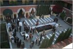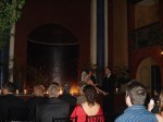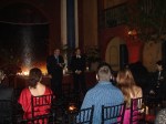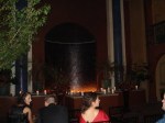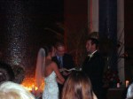 Our group of 8 caravan’d over to the San Antonio River Walk’s Hotel Valencia around 7pm. We met the groom and some of his family at the cocktail lounge for drinks and conversation. After a few rounds, we were led up to the 3rd floor courtyard where the wedding was to take place. From the chairs and flower petals to a fire fountain as the backdrop to the altar, the ambience at the ceremony was amazing. The whole scene was chique yet intimate at the same time.